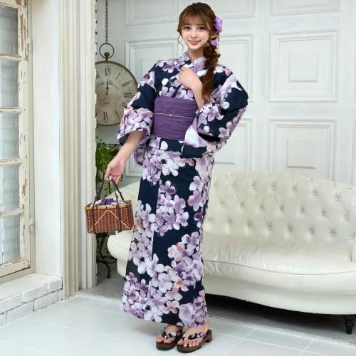 濃紺に映える紫陽花柄の浴衣3点セット(YUKATA)