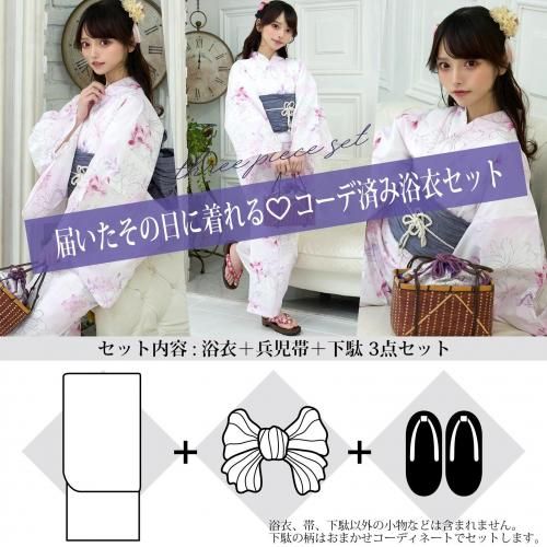 セット内容浴衣、兵児帯(グレー色×1)、下駄 3点