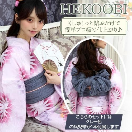 セット内容浴衣、兵児帯(グレー色×1)、下駄 3点
