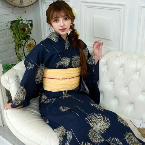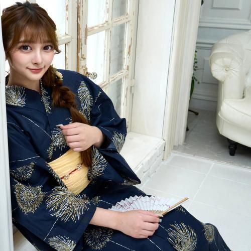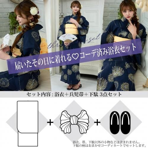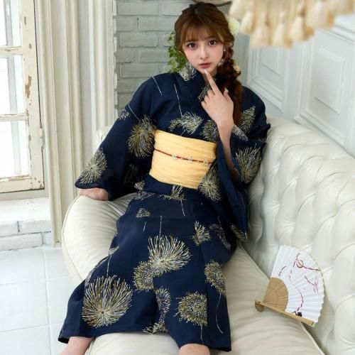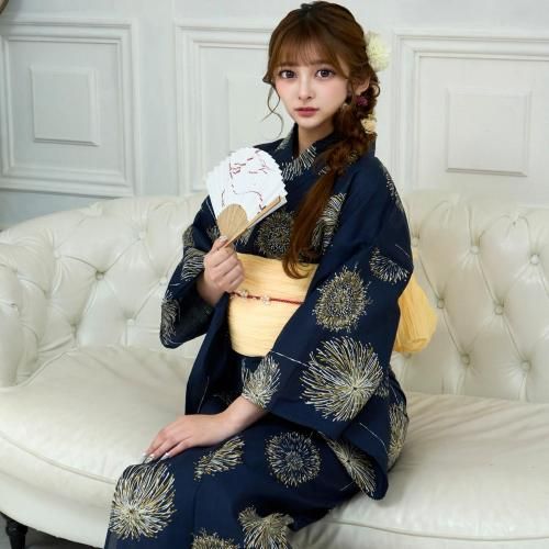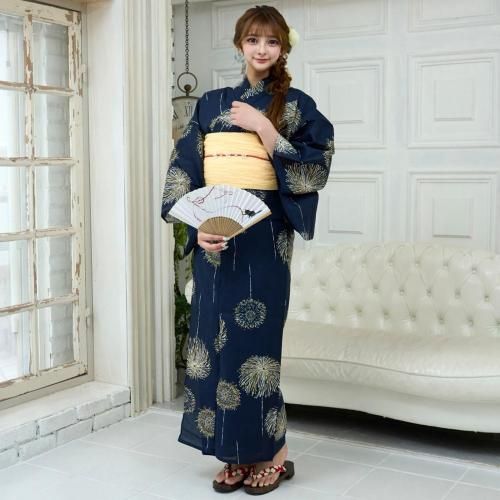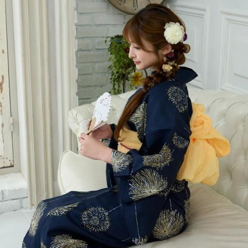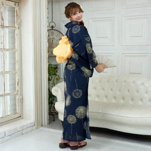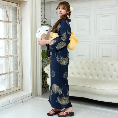 夜空を彩る金花火柄の浴衣3点セット(YUKATA)。