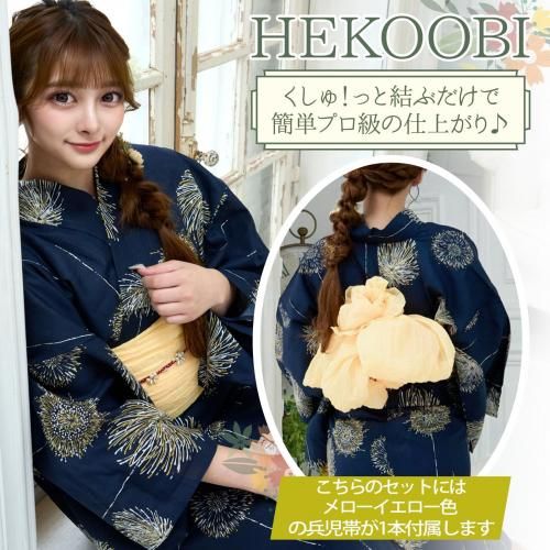 セット内容浴衣、兵児帯(メローイエロー色×1)、下駄 3点