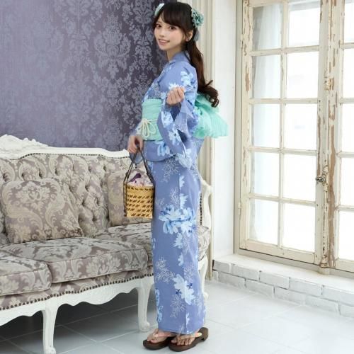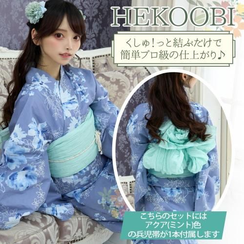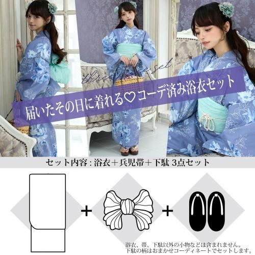 セット内容浴衣、兵児帯(アクアミント色×1)、下駄 3点