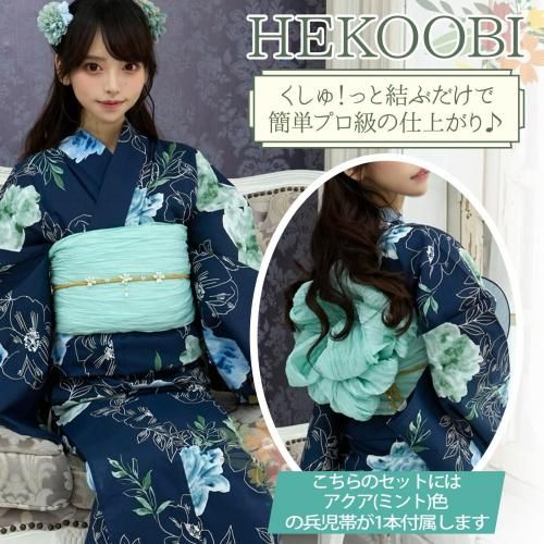 セット内容浴衣、兵児帯(アクアミント色×1)、下駄 3点