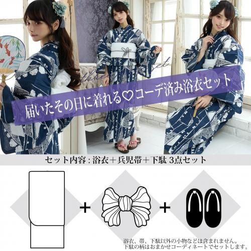 セット内容浴衣、兵児帯(ホワイト色×1)、下駄 3点