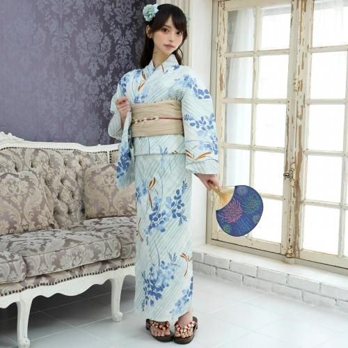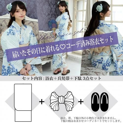 セット内容浴衣、兵児帯(サンド色×1)、下駄 3点