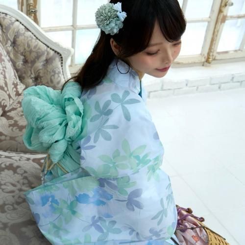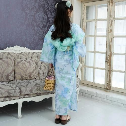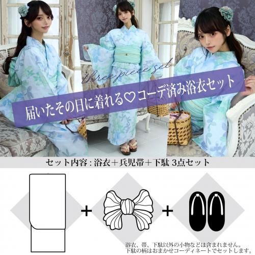 セット内容浴衣、兵児帯(アクアミント色×1)、下駄 3点
