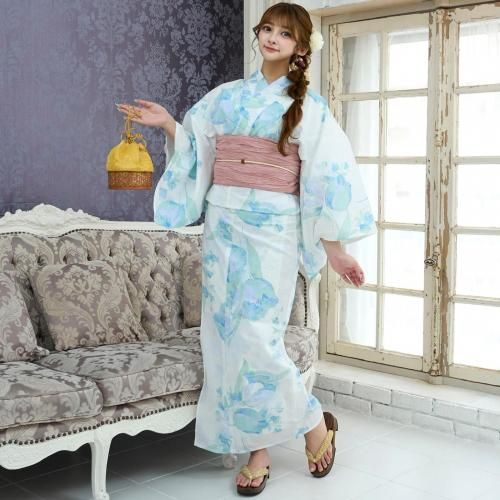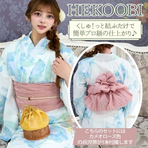 セット内容浴衣、兵児帯(カメオローズ色×1)、下駄 3点