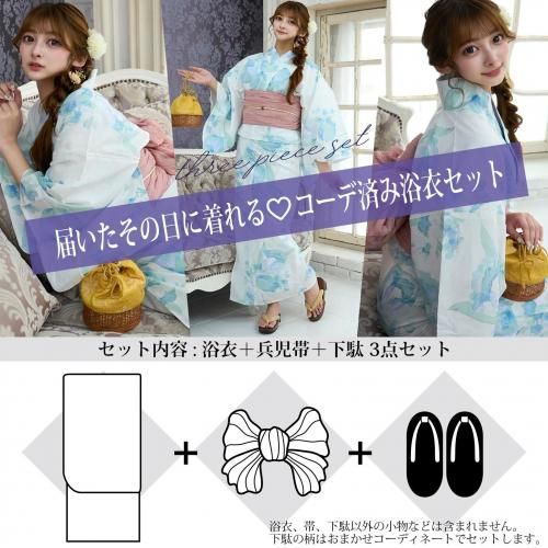 兵児帯(1本)と鼻緒下駄の浴衣3点セットになります。