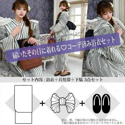セット内容浴衣、兵児帯(ブラック色×1)、下駄 3点
