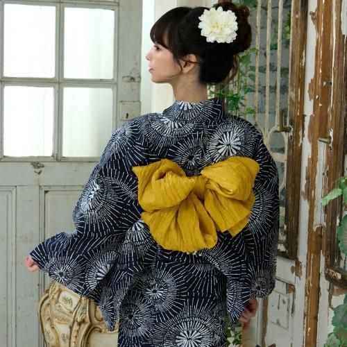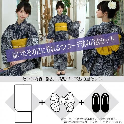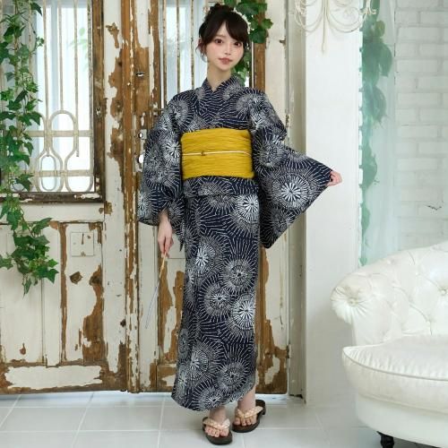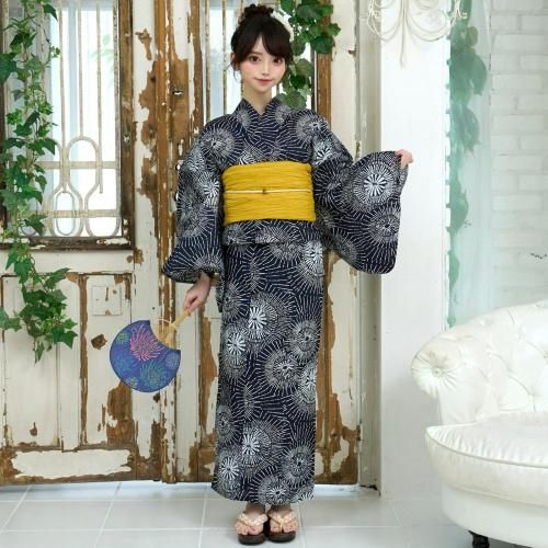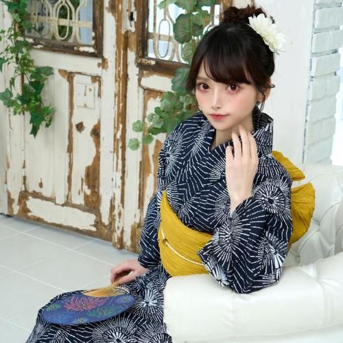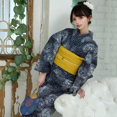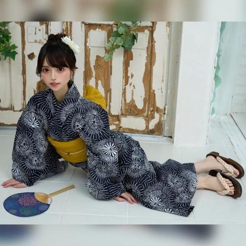 濃紺に白の線香花火文様浴衣3点セット(YUKATA)。