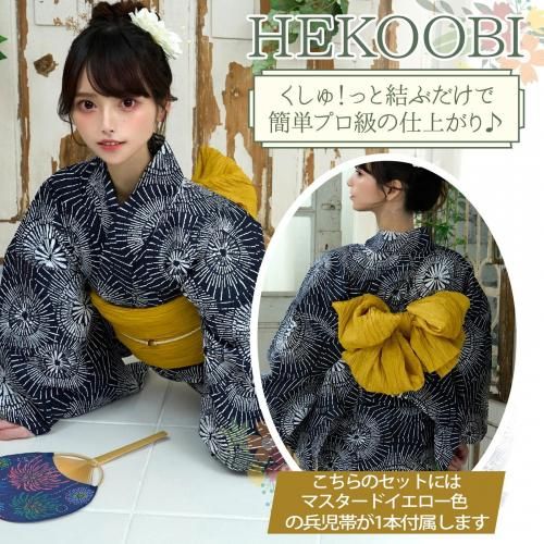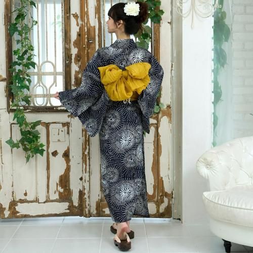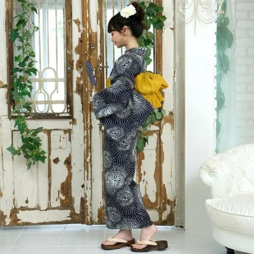 セット内容浴衣、兵児帯(マスタードイエロー色×1)、下駄 3点