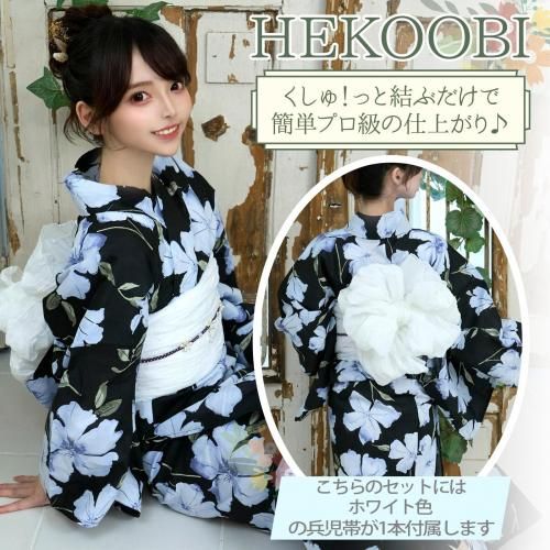 セット内容浴衣、兵児帯(ホワイト色×1)、下駄 3点