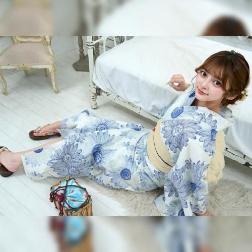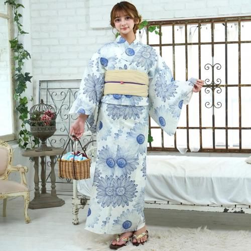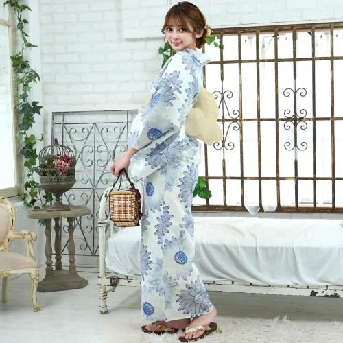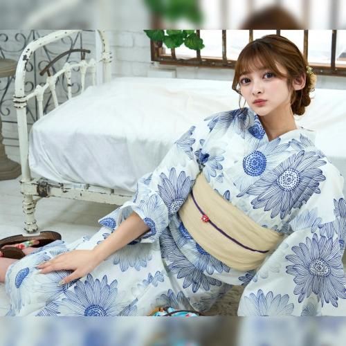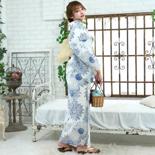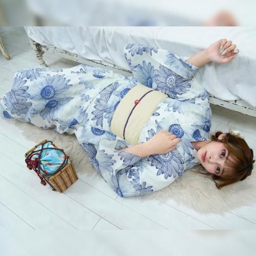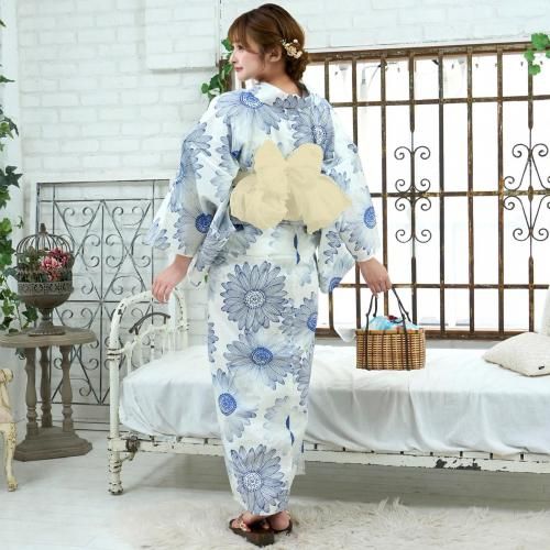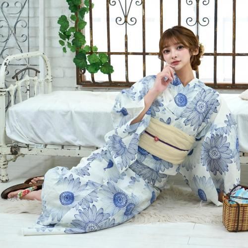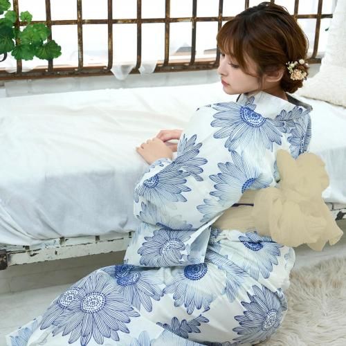 【ブラックフライデー★20%OFFセール】濃淡のある大柄デイジーが涼し気な浴衣3点セット(YUKATA)