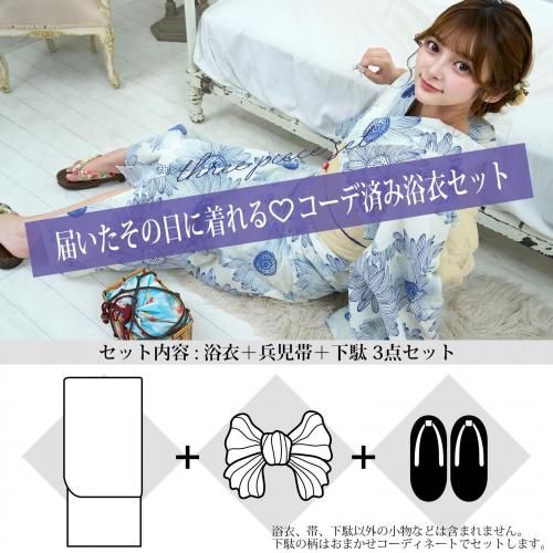濃淡のある大柄デイジーが涼し気な浴衣3点セット(YUKATA)。