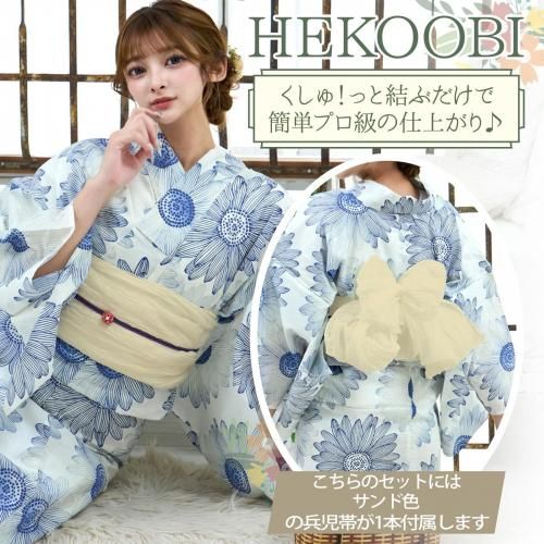 セット内容浴衣、兵児帯(サンド色×1)、下駄 3点