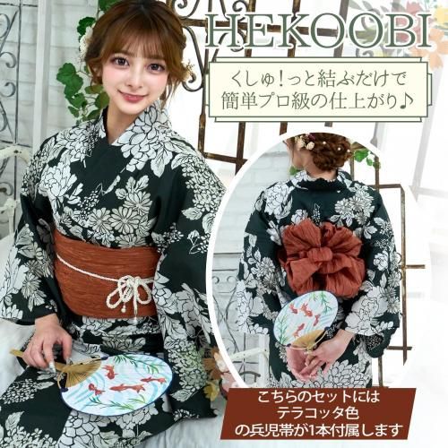 セット内容浴衣、兵児帯(テラコッタ色×1)、下駄 3点