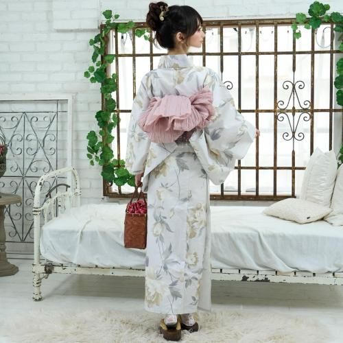【クーポン利用で2,000円OFF!】ライトグレーにクラシカルな牡丹文様の浴衣3点セット(YUKATA)