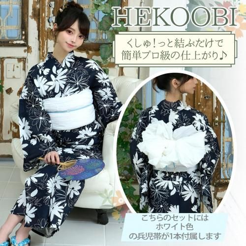 セット内容浴衣、兵児帯(ホワイト色×1)、下駄 3点