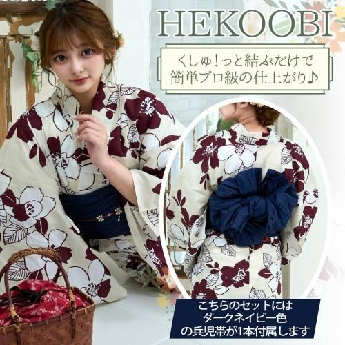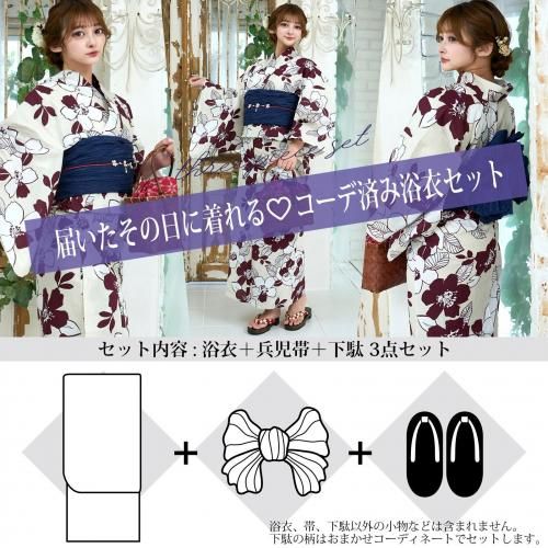 セット内容浴衣、兵児帯(ダークネイビー色×1)、下駄 3点