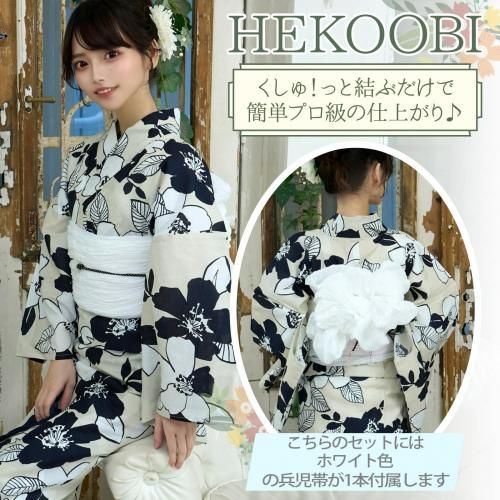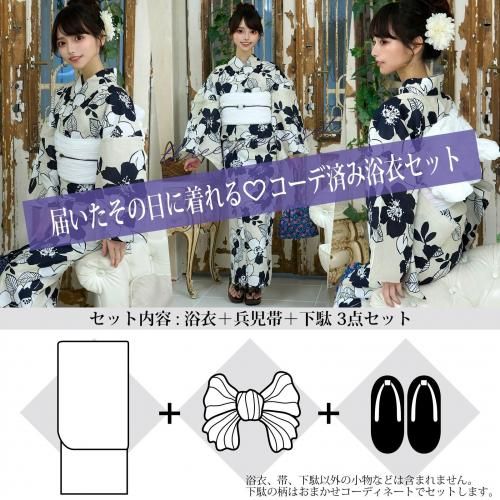 セット内容浴衣、兵児帯(ホワイト色×1)、下駄 3点