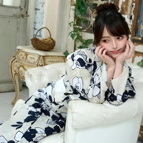 生成に濃紺と白抜き夏椿の浴衣3点セット(YUKATA)。