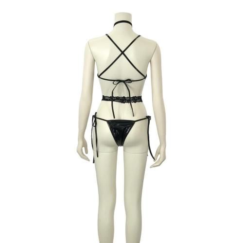 大胆なカッティングで挑発的なシルエットを魅せつけるエナメルテディ(TEDDY)。フェイクレザーの光沢感に大胆なカッティング、ボディラインを際立たせた挑発的なデザインのテディ。胸元は深いVネックに、首元からバストに向けてハーネスのようなストリングが肌を強調しハードで支配的な魅力を放つ。フェミニンな繊細レースがウエストを細見えし、ボトムス部分はリボンで調整が可能なドロストタイプ。リボンを解くとより肌が露わになってしまうギミックがその魅力をより一層高めます。