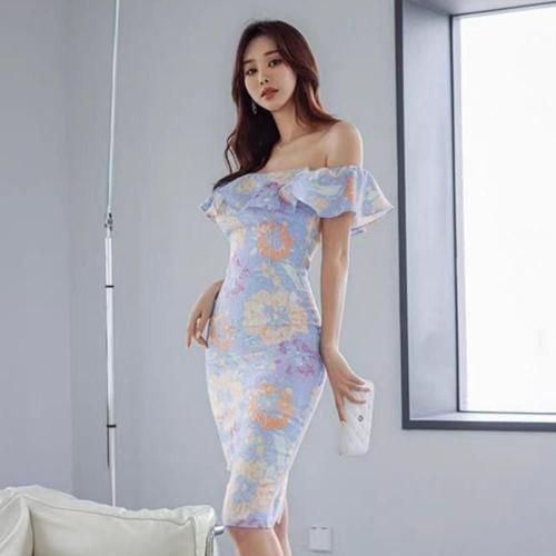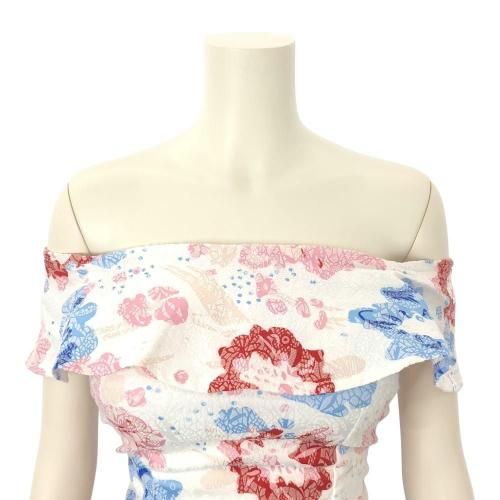 タグ:#ミディアムドレス #オフショルダー  #タイト #ブルー系 #ホワイト系