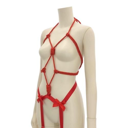 五感を研ぎ澄ませ緊縛の造形美を追求するソフトSMガーターランジェリー(GARTER LINGERIE)。朱色の縄が熱く火照った身体に絡みつく刺激的な拘束着はまさに芸術的。柔らかなポリエステル縄を使用しているので初心者さんも手軽に挑戦しやすく、アジャスター付きフックで着脱が容易になっているのでファッショナブルに亀甲縛りを体験。ガーターとミックスすることで、もっとカジュアルにソフトSMの世界を味わえます。付属の縄は手首や足首を縛ることで自由を奪われさらに高揚感が高まり記憶に残る時間を過ごせそう。