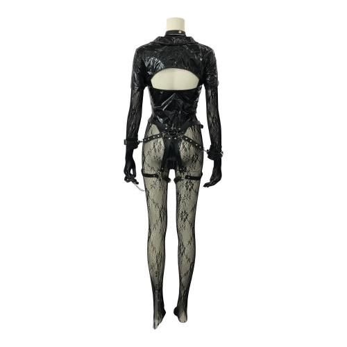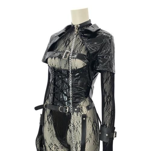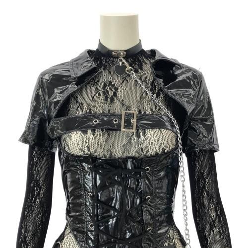 頭からつま先まで羞恥心が身体中を駆け巡るバニーマスクのボンデージコスプレ(COSPLAY)。独特の艶や輝きを放ち、視覚的なインパクトを与えるPUレザーのボンテージがピッタリとフィットし、ボディラインに陰影を落とすことでミステリアスなムードが漂います。オープンバストはバストトップを隠すようにベルトを渡し、チョーカーから繋がる冷たいチェーンのリードに服従と羞恥心が入り乱れる。片側サイドにはファスナー、超ハイレグのクロッチ部分には2列3段のホック付きで着脱しやすいのも嬉しいポイント。身体の曲線が際立つエレガントな花柄全身ストッキングをインナーに着用することでアート作品のような美しさを放ち、手枷付きのガーターハーネスを身に着けることでさらにハードな拘束感を得られます。目元の露出が神秘的なラビットマスクは、調整可能で肌に優しいソフトレザーを使用。セット着用はもちろん、単品での着用など組み合わせ豊富なのでその時の気分で新たなパートナーの一面を楽しめます♪