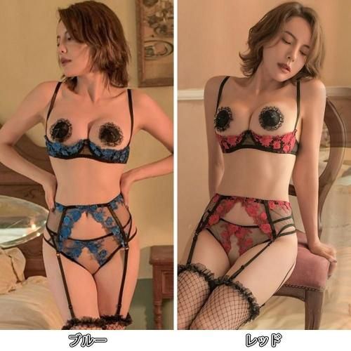 セット内容ブラ、ショーツ、ガーターベルト、二プレス、ニーハイ網タイツ 5点