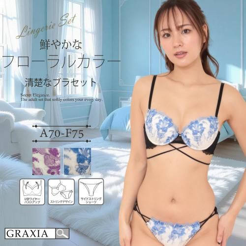 【クリスマスセール!全品10%OFF】フローラルシャワー クロスストラップ ブラ・ショーツセット(ブラセット)