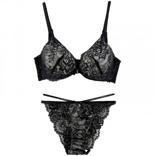【クリスマスセール!全品10%OFF】リュクスな総レース脇高&L字ワイヤー美谷間メイクブラ・ショーツセット(ブラセット)