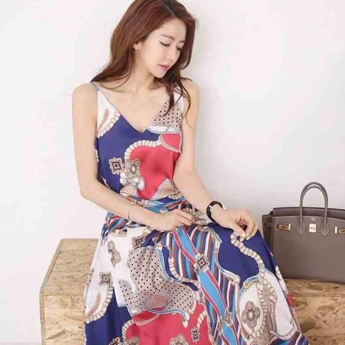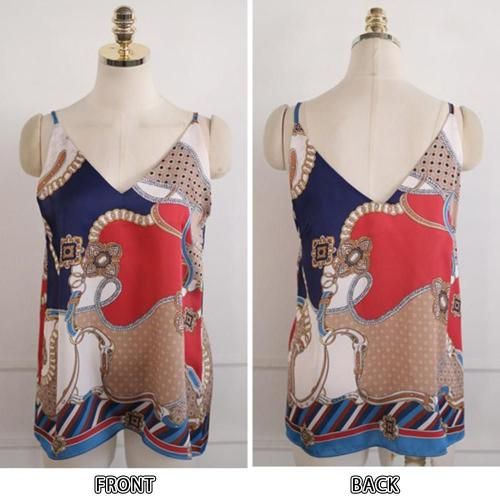 スカーフ柄キャミ×タック入りミモレ丈スカートセットアップ(キャバドレス・CABARETDRESS)。Vネックのキャミソールトップスと、ウエストにタックが入ったAラインのミモレ丈スカートは、スカーフ柄がもたらす華やかでエレガントな印象を強調し、セットアップとして着用した際に統一感と洗練された雰囲気。スタイルアップ効果のあるウエストのタックや、歩くたびに美しく揺れるAラインのミモレ丈スカートが落ち着いた大人の女性の魅力を放ちます。存在感があるので、単品として着用してもコーデのアクセントになります♪