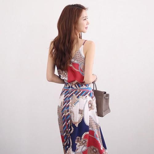 【クリスマスセール!全品10%OFF】スカーフ柄キャミ×タック入りミモレ丈スカートセットアップ(キャバドレス・CABARETDRESS)