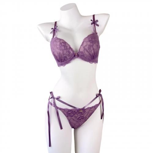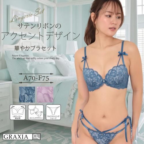 【クリスマスセール!全品15%OFF】サテンリボンアクセントがセクシー漂うレースブラ・ショーツセット(ブラセット)