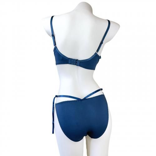 サテンリボンアクセントがセクシー漂うレースブラ・ショーツセット(ブラセット)。デコルテに施されたリボンがフェミニンで、明るいベースカラーにレースを重さねたすっきりと明るい印象のブラとショーツのセット。L字ワイヤーがみぞおちの締め付け感や圧迫感を少なくし、快適な付け心地。サイドで結んだサテンリボンが愛らしさの中にセクシーさが漂うショーツは、フロントやサイドなど結ぶカ所でイメージが異なります。特別な日にはもちろん、普段使いでも気分を上げてくれるデザインです。