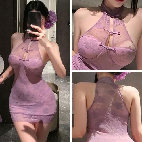 【ブラックフライデー★20%OFFセール】魅惑的な紫の透け感が曲線を魅せつけるチャイナ服風ベビードール(BABYDOLL)