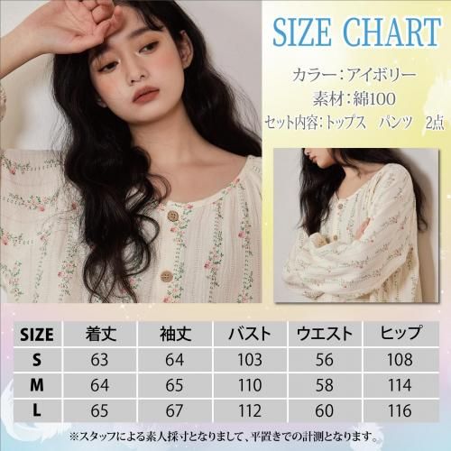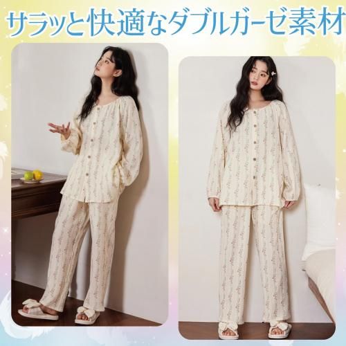 【ブラックフライデー★20%OFFセール】小花柄ラウンドネックロングスリーブパジャマ(PAJAMA)