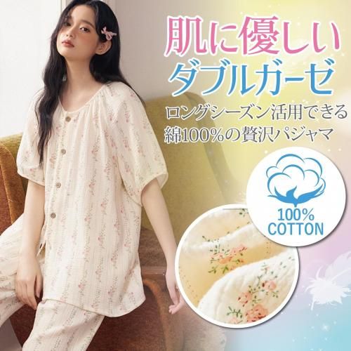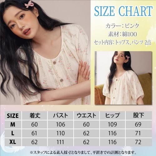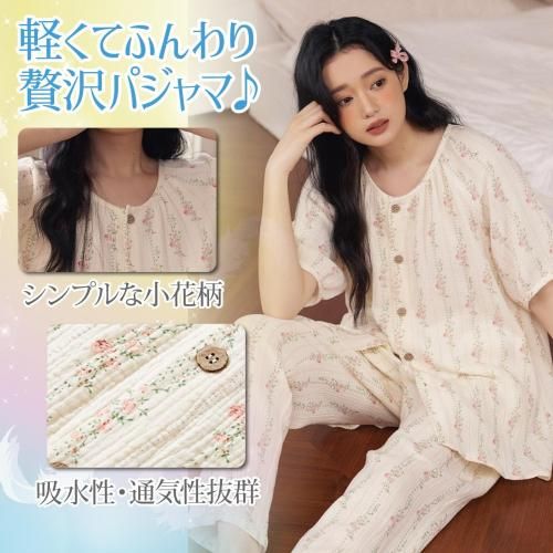 【ブラックフライデー★20%OFFセール】小花柄ラウンドネック半袖パジャマ(PAJAMA)