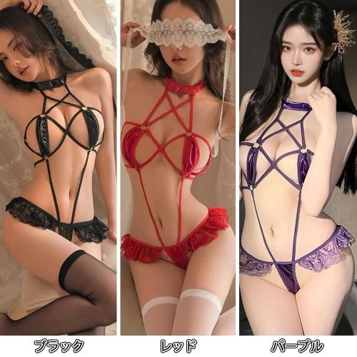 しなやかに刺激的なハーネスマイクロテディ(TEDDY) 。身体を這うハーネスストリングがセンシュアルで、エナメルの光沢にフリルレースのミニスカートをドッキングした過激な中に可憐さを潜ませたデザイン。放射状に広がるハーネス構造がデコルテとバストラインを芸術的かつ挑発的に演出。また、バストトップやクロッチの布地は最小限で肌の露出を最大限に引き立て、官能的な曲線美を際立たせる。照明を反射して艶めく光沢が見る角度によって表情を変え、情熱的で高級感のある雰囲気を醸し出します。付属のレースは手足を拘束したり、目隠しをして触覚を研ぎ澄ませたりと楽しみ方自在。甘さと辛さが絶妙にミックスされた挑発テディで、欲望を解き放つ夜を…。