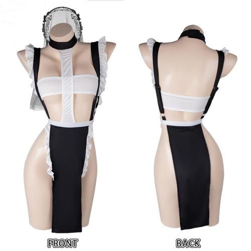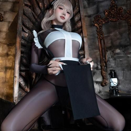ボディスーツで幻想的に透過させるシースルーシスター風コスプレ(COSPLAY)。シースルーのボディースーツやフェミニンなフリルエプロンなど、「見せる」と「隠す」のバランスが境界線を曖昧にする刺激的なシスターコスプレ。全身を覆うボディスーツはなめらかな曲線美を強調し、素肌や下着をほのかに透すことで想像力を無限に掻き立て、さらにクロッチレスデザインがセクシーなTバックショーツと相まってより官能的なムードを高めます。愛らしい印象と、奉仕的なムードを放つ純白のフリルエプロンは無垢なメイドを強調。チュール素材のシスターベールはふんわりとしたボリュームがバックスタイルを華やかに演出し、ドラマティックなインパクト を与えます。