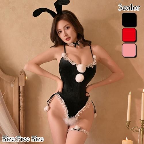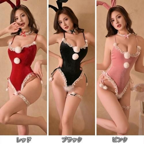 後ろ姿からも攻める大胆オープンバックのベロア風バニーコスプレ(COSPLAY)。ベロア風の光沢と柔らかな肌触りが心地良い、ボディラインを際立たせたテディタイプのバニーガール。テディ風のデザインでボディラインを美しく見せ、縁取りには白いフリルやレース、胸元と太もも部分には白くてふわふわなポンポンがあしらわれ愛らしいアクセントに。また、背中が大きく開き、アンダー部分はクロッチからヒップまでオープンバックの大胆な肌見せがパートナーの高揚感を高めます。