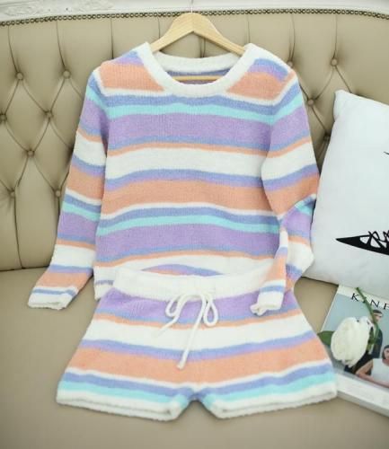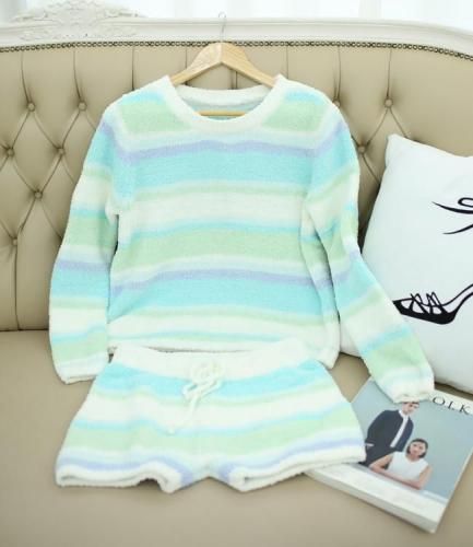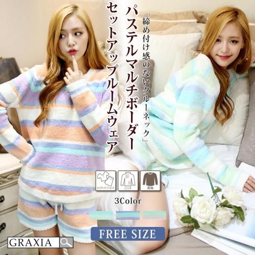 大人可愛いパステルマルチボーダーモコモコニットセットアップルームウェア(ROOMWEAR)【メーカーお取り寄せ品】