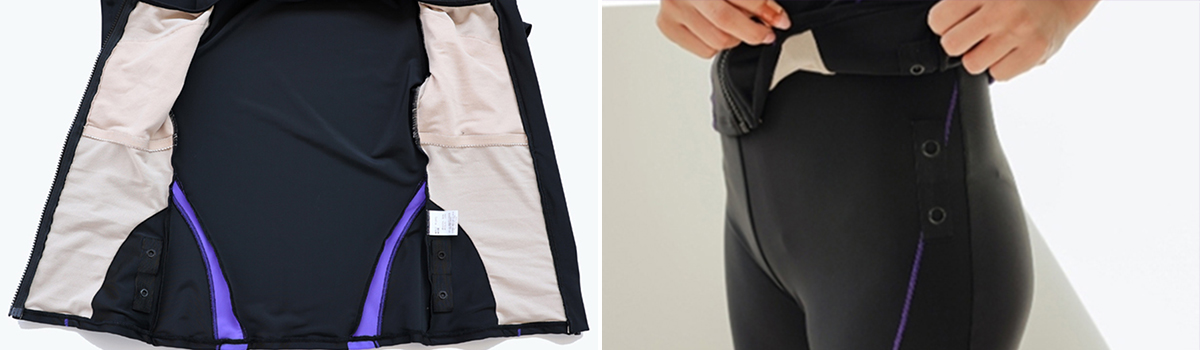 めくれを防止するボタン付きで、自信を持って動けるのはもちろんのこと、フロントフルジップが付いているので、着脱も簡単!さらに、サイドラインのデザインや半袖のスタイリッシュさも魅力のひとつです。