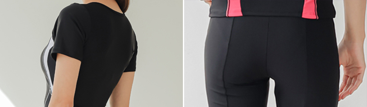 サイドラインがスリム効果を演出し、半袖デザインが肩周りの日焼けを防ぐので、アウトドアでのトレーニングやビーチでのリラックスシーンにも最適です。