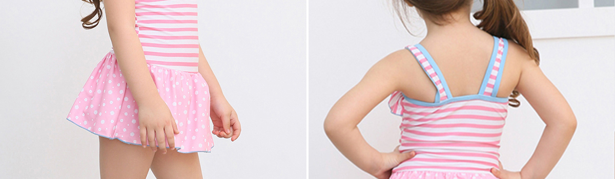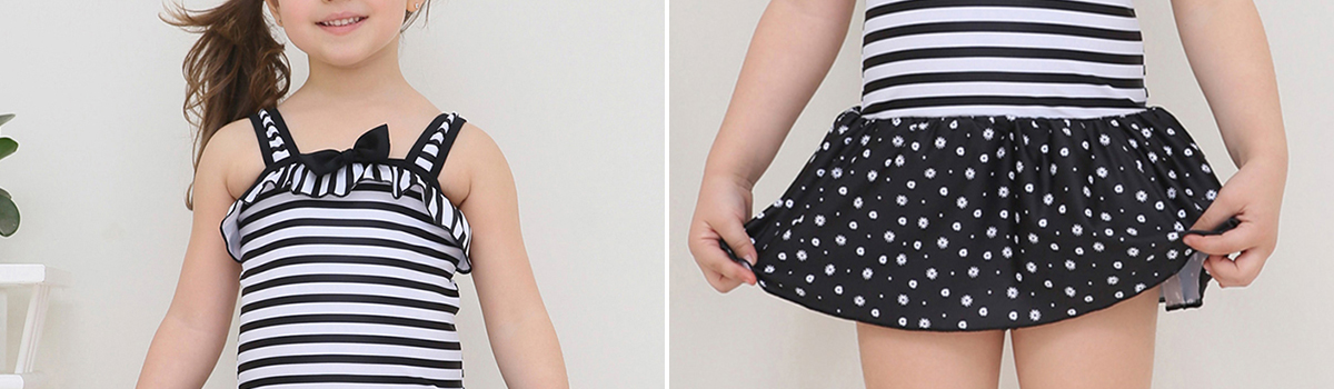 遊び心溢れるリボンやフリルが、お子様の動きに華やかさを添え、海やプールサイドでの存在感を際立たせてくれること間違いなし!日焼け対策にもなるUVカット機能付きなので、安心して遊んでいただけます。