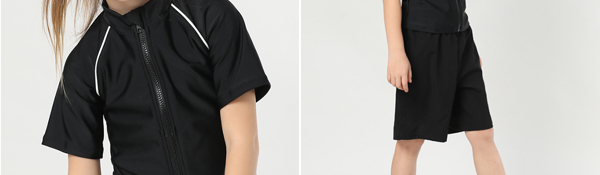 【新生活応援セール最大20%OFF】男女兼用フロントファスナー半袖ラッシュガード2点セットSchoolスクール学校キッズ子供用水着