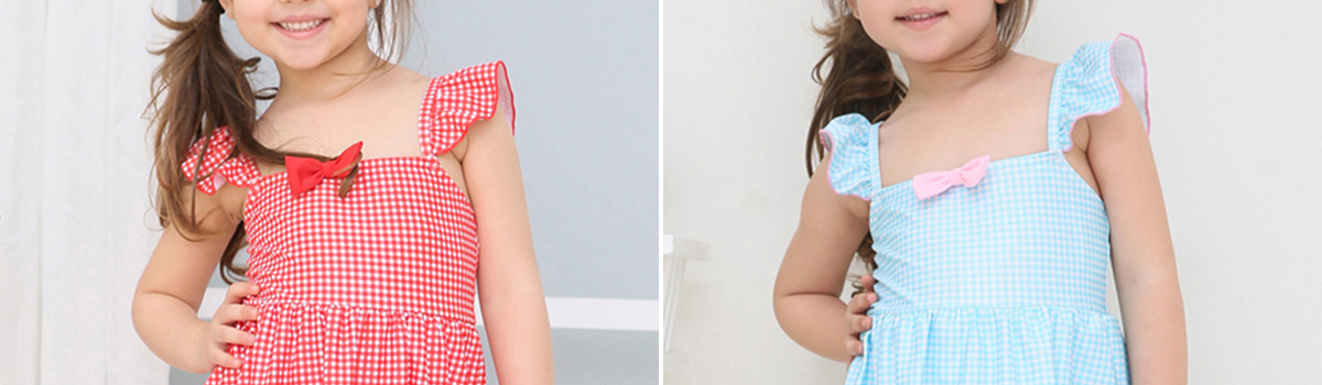 夏のキュートなスタイルを叶える「ワンポイントリボンギンガムチェック柄ショルダーフリルKIDSキッズ水着」で、お子様の夏をより特別なものにしませんか?