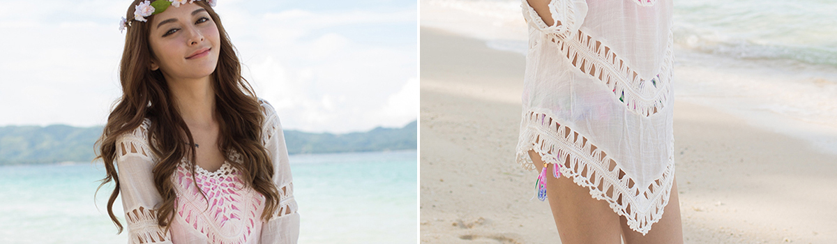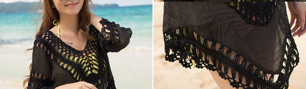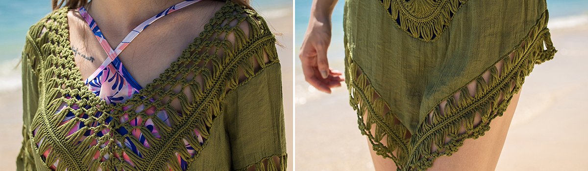クロシェ編みチュニック体形カバーウェアがあなたの水着・ビーチウェアコーデを一層魅力的に演出します。ゆったりとした襟ぐりが女性らしいシルエットを引き立て、体型をカバーしながらも上品でエレガントな印象を与えます。