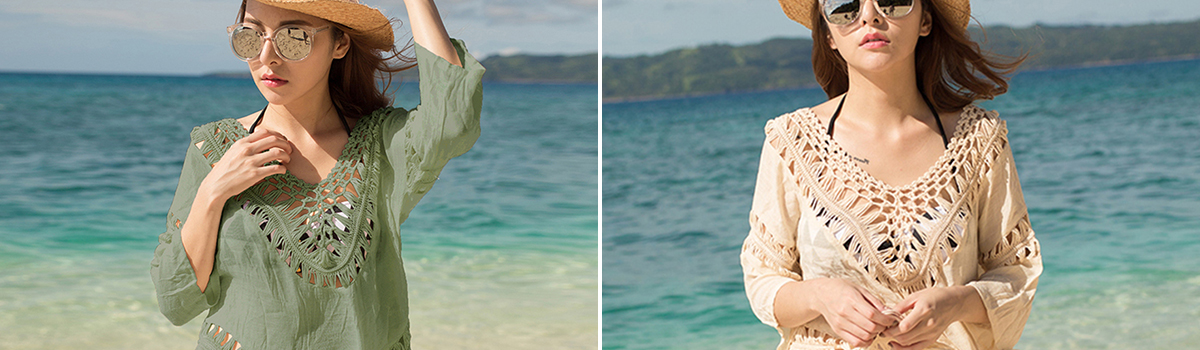 光を透かすクロシェ編みが涼しげで、夏の暑さを感じさせません。フリンジディテールがボヘミアンテイストを加え、女性らしい柔らかな印象を与えます。体型をカバーし、自信を持って過ごせること間違いなし!
